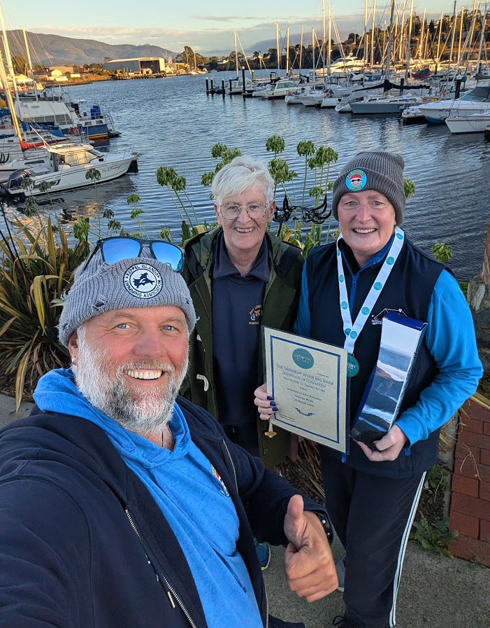 I was met by the Derwent River Swim Association, where Doug presented me with my certificate, medal, and a beautiful bottle of Tasmanian champagne (still unopened — it deserves a proper moment).